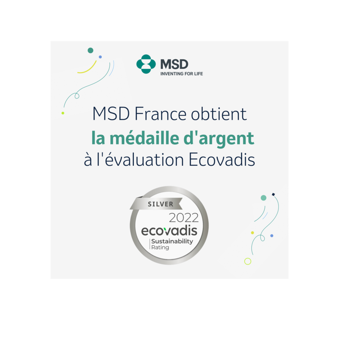 Soucieux d’objectiver l’impact réel de ses engagements RSE, MSD France a fait le choix de se soumettre à l’évaluation EcoVadis, un organisme indépendant et international qui évalue les performances des entreprises en matière de développement durable et de responsabilité sociale.